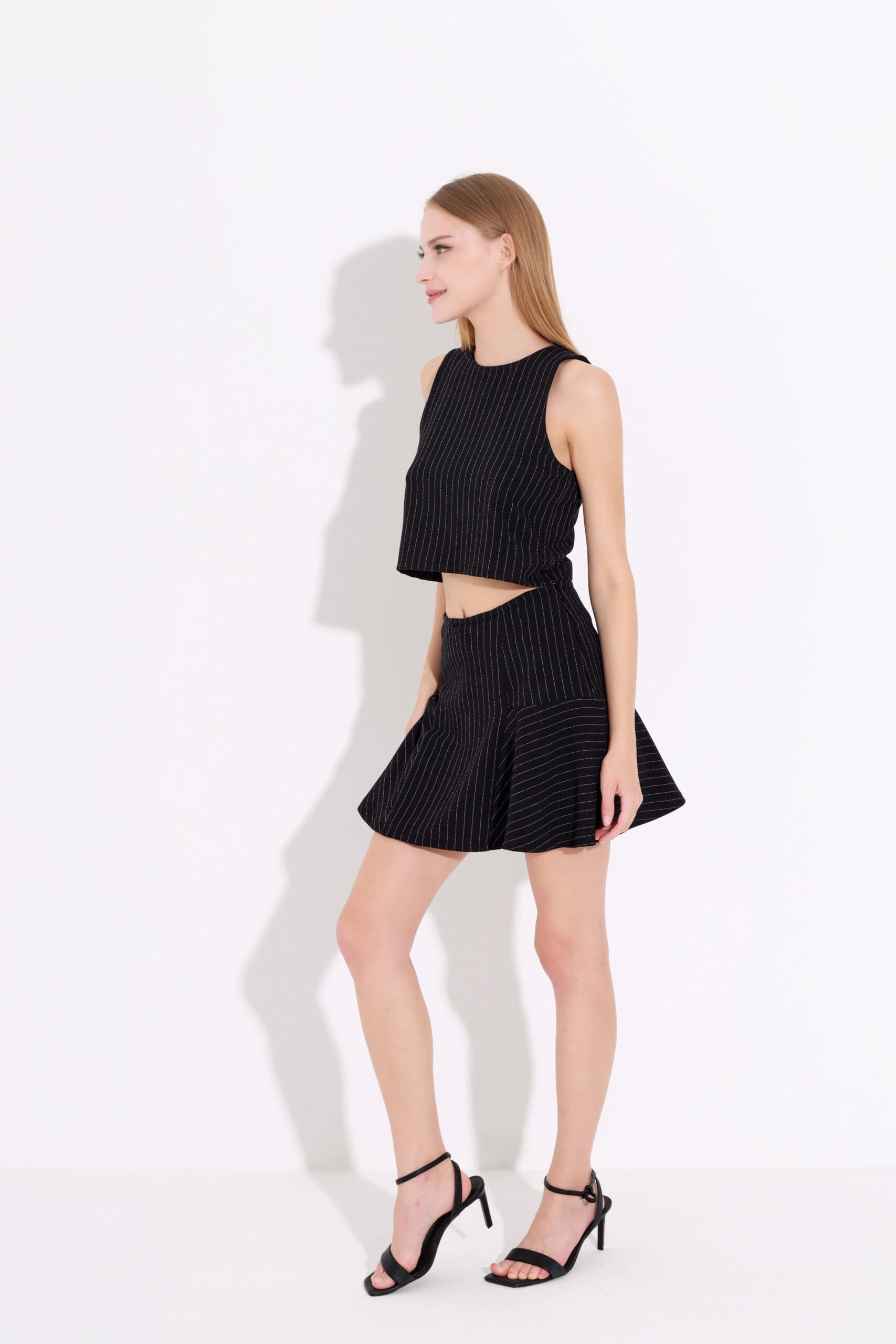 Opt for both comfort and style with our striped business blouse and skort. Model details: Height: 175 cm, Bust: 85 cm, Waist: 61 cm, Hips: 92 cm.