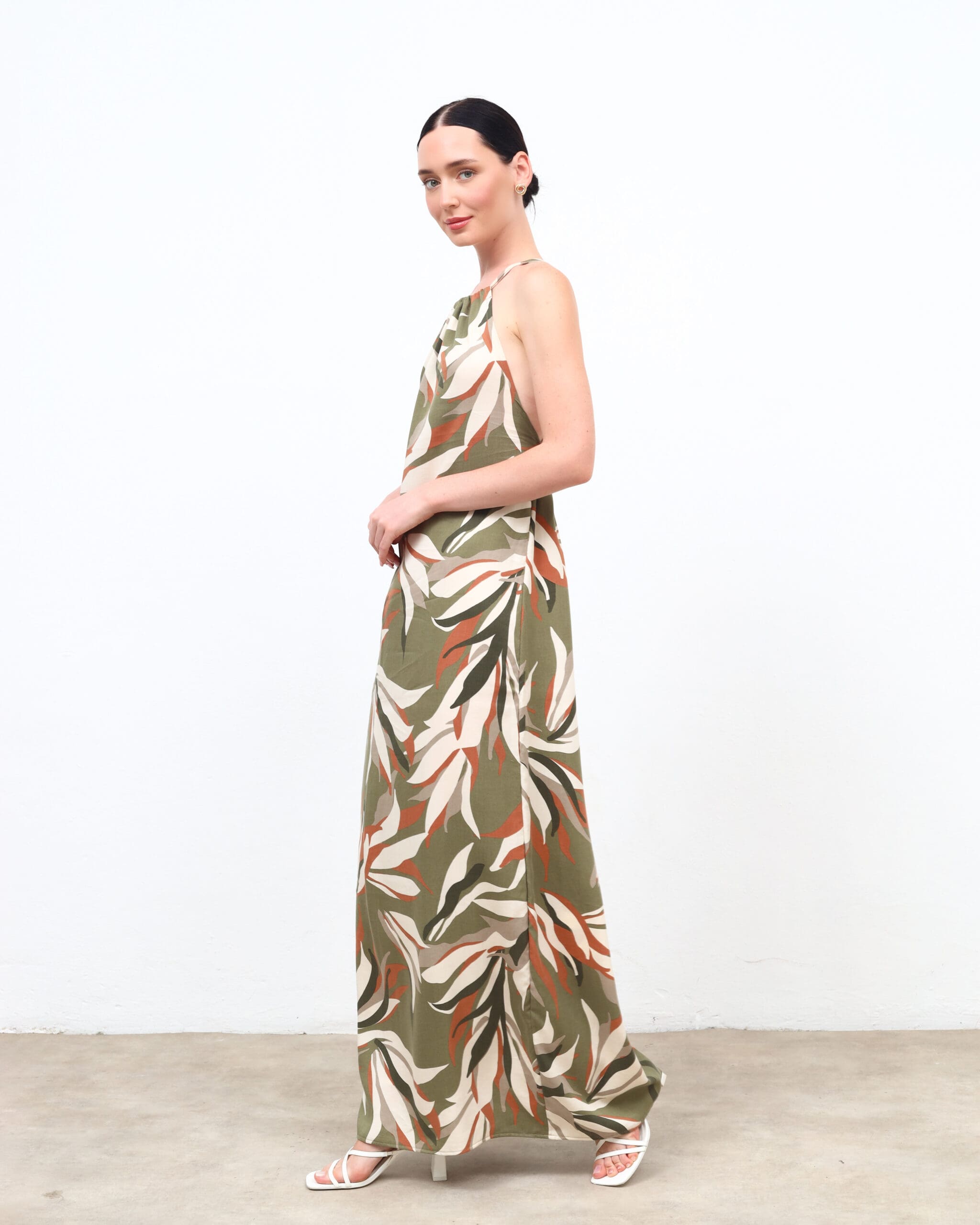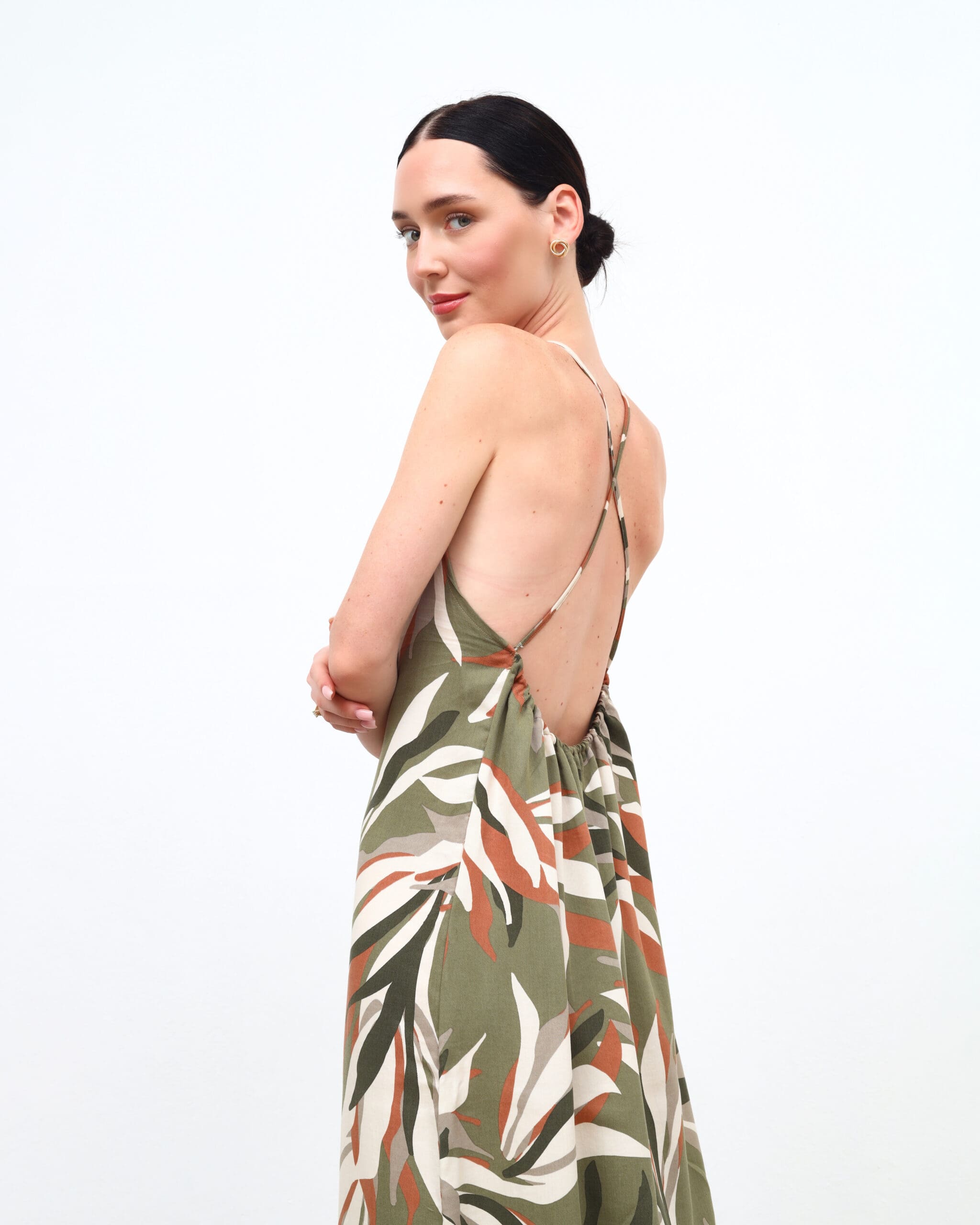 Khaki Floral Backless Maxi Dress