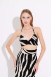 Stand out in style with this leopard bustier. It ties at the neck and offers adjustable sizing. Model details: Height: 175 cm, Bust: 85 cm, Waist: 61 cm, Hips: 92 cm.
