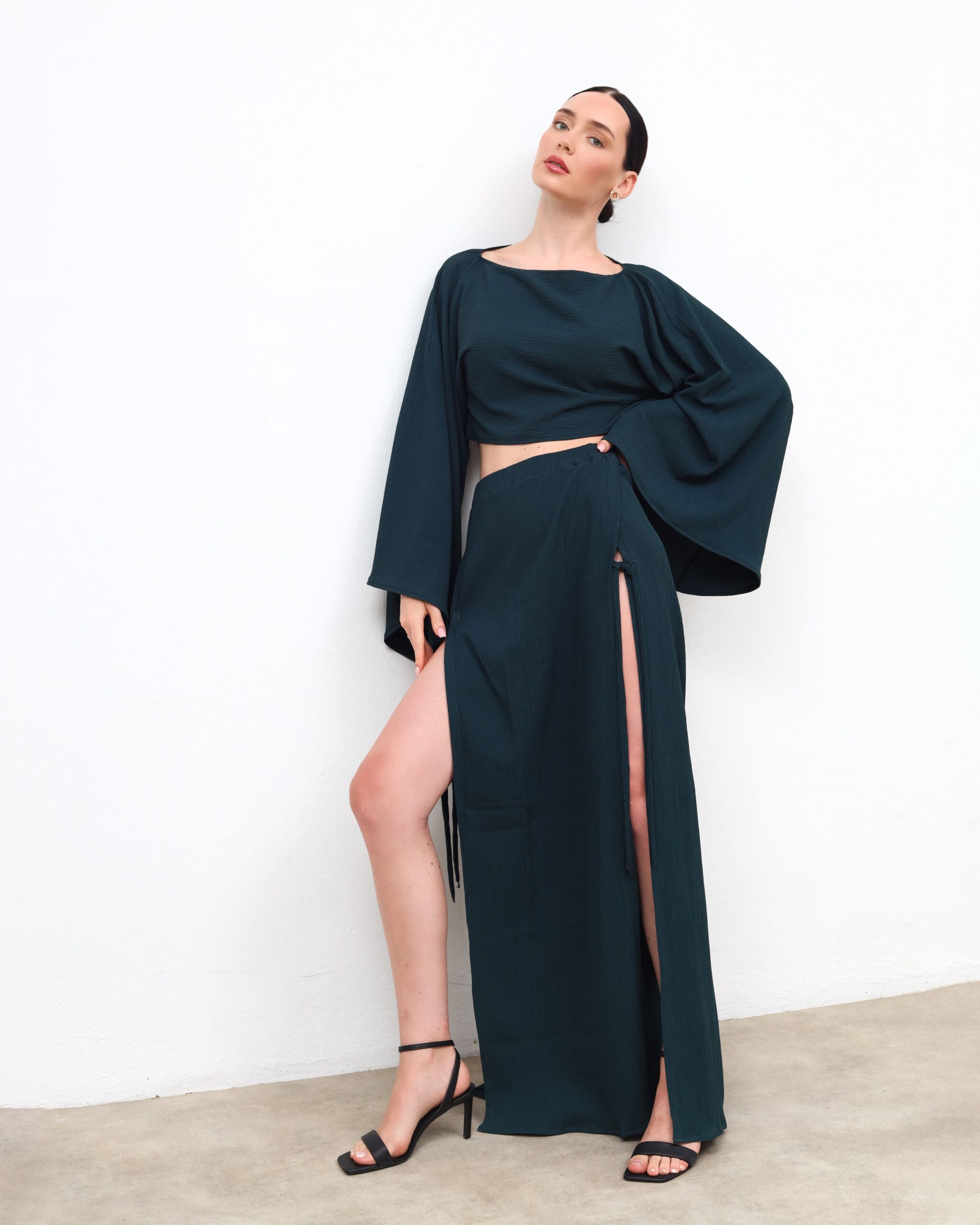 Be the first to review “Petrol Deep-Slit Maxi Skirt”